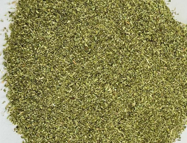 Dried Greek oregano supplied in bulk, ideal for repackers and food manufacturers.
